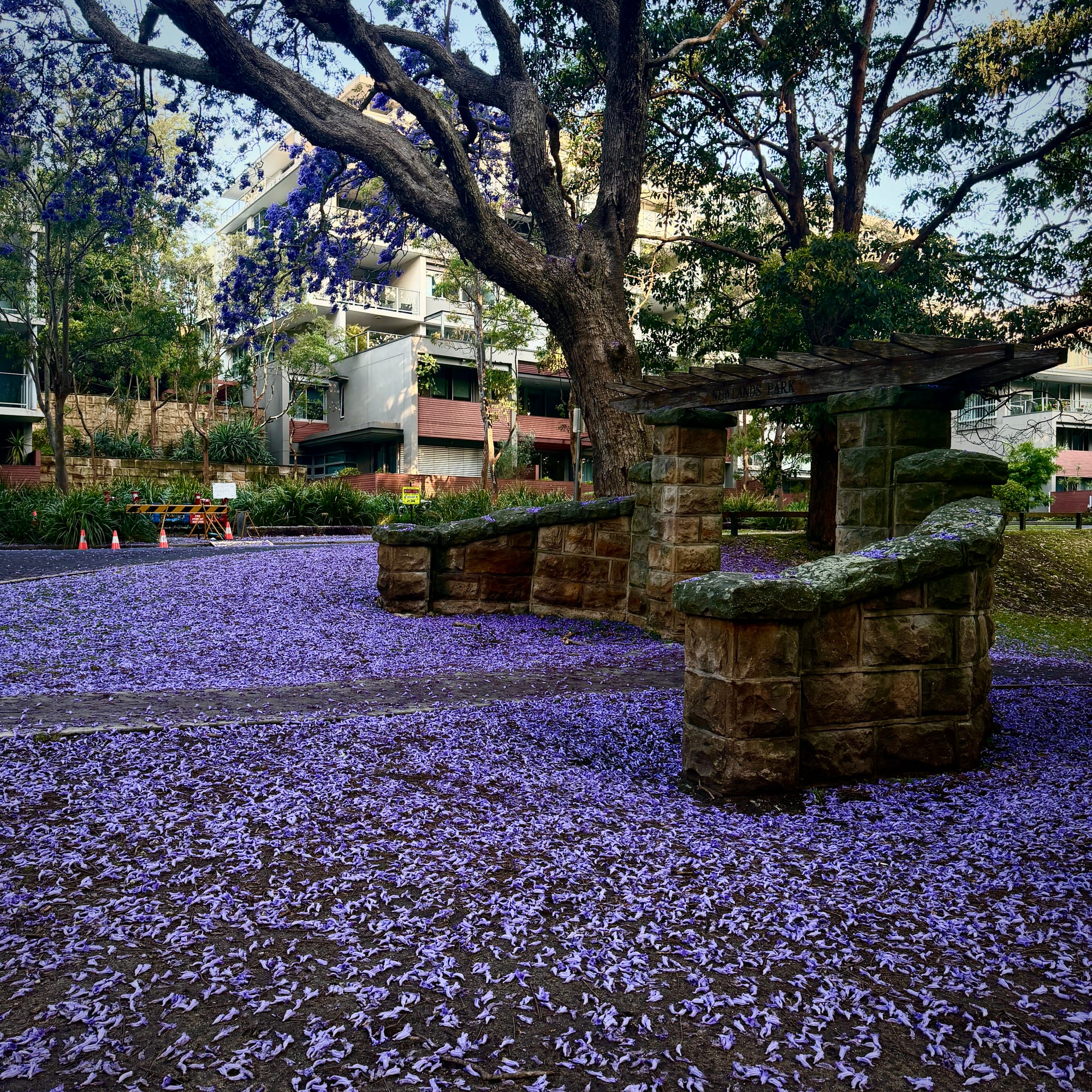 The onset of Spring in Sydney means a warm glow to the evening sky and walking in a purple haze.